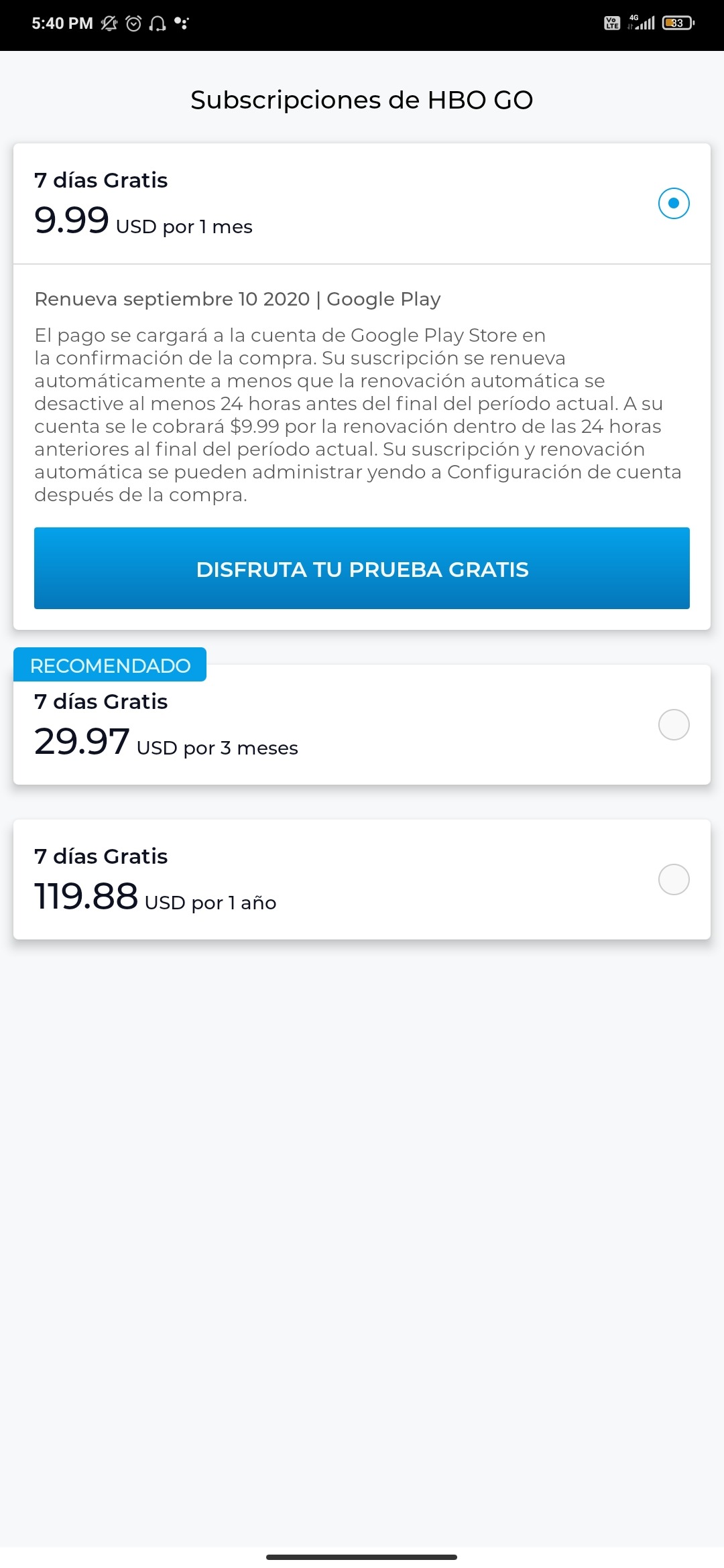 Seleccionamos el primer plan y le damos en disfrutar la prueba gratis!